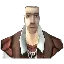 Alwin sits on a bench near Meldor's shop in the Lower Quarter, next to some sheep. He is driven mad by the constant hammering of Fellan and offers the hero gold to make him stop.